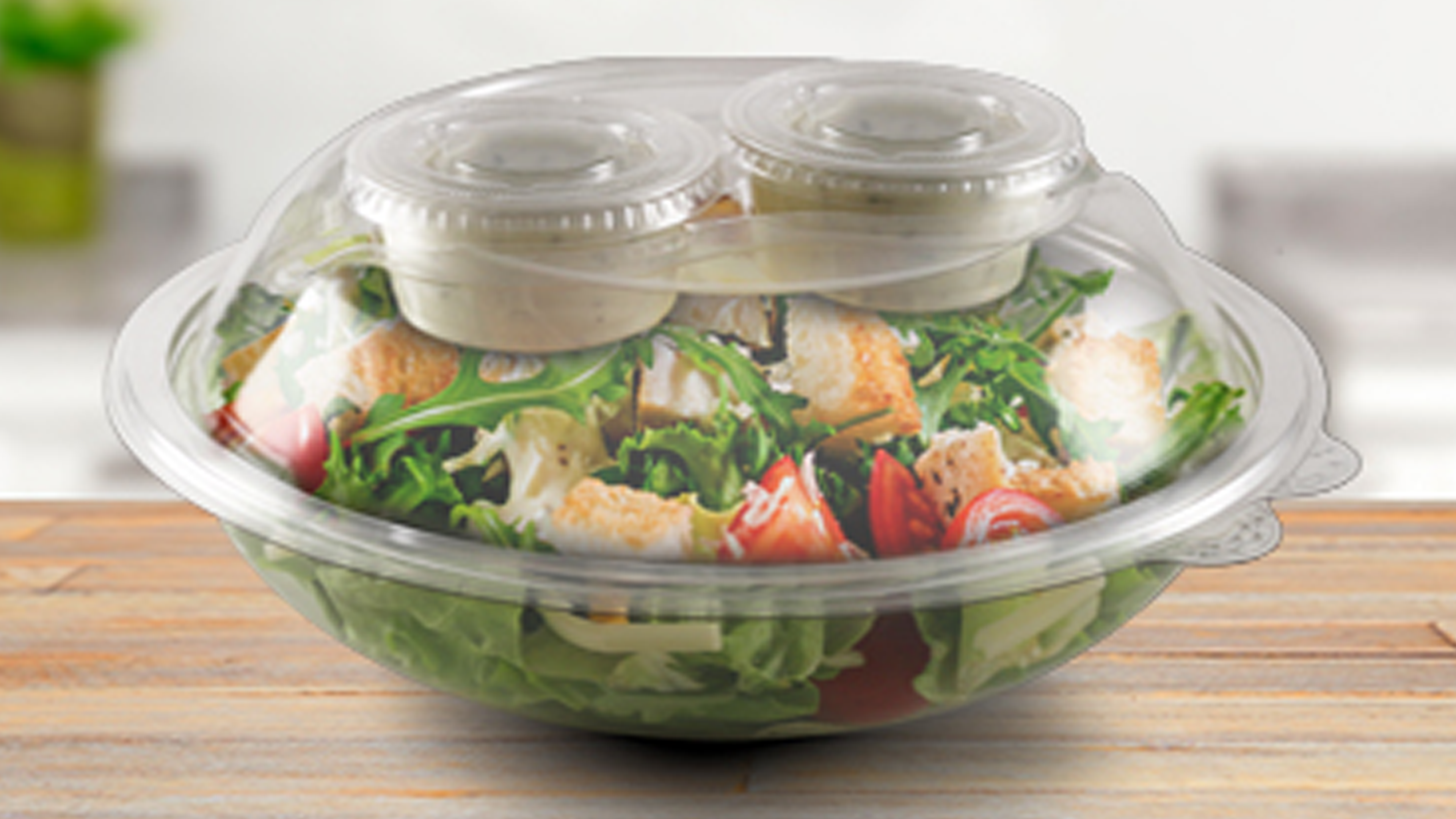 Keeping dressings and toppings separate preserves the texture and appeal of your food and lets your customers choose how much dressing or toppings they want to use. With the FreshMate lid, toppings are held in two portion cups and placed securely on top— so the food stays crisp until it’s time to eat. This simple, smart solution satisfies customer preferences for healthier, fresher meals. Whether it’s ranch, vinaigrette, or a specialty topping, customers enjoy full flavor control— with no soggy surprises.